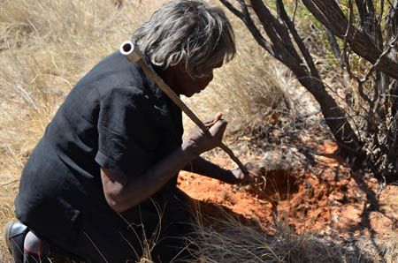 I’d forgotten to bring a container for the grubs so we created little containers out of alfoil for them. Shaan had scratches all over his reddened hands. He had been ripping into the earth furiously, pulling out as many of these bush delicacies as possible. The women were impressed and had sung Eastern Arrente songs, encouraging the grubs to emerge whilst he had battled with the ground.