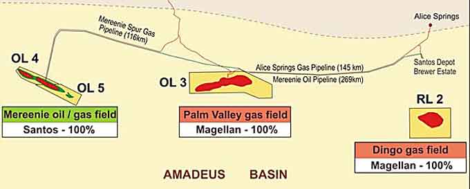 The gas is delivered to Santos via the Amadeus pipeline which runs from Palm Valley to Alice Springs, Tennant Creek, Katherine and Darwin.