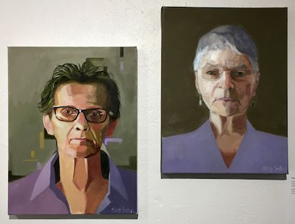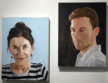 Right: Smith’s portraits of myself (left) and Matt Grant.