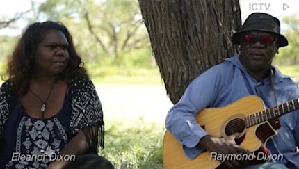 Left: Ray Dixon with daughter Eleanor Dixon who perform together as Rayella. Screen capture from their video, Warlungka: Language Lived Through Song, on ICTV.