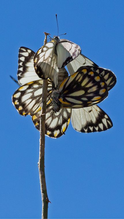 Competition between male butterflies hoping to breed is intense. Males frequently jostle for position and congregate around females while they are still emerging from the chrysalis. One grouping (pictured above) caught my eye and I made a hasty image before their arrangement drifted apart. Frequently the mating butterflies remain coupled as they take to the sky, a fluttering ballet accompanied by the papery rustling of many wings.