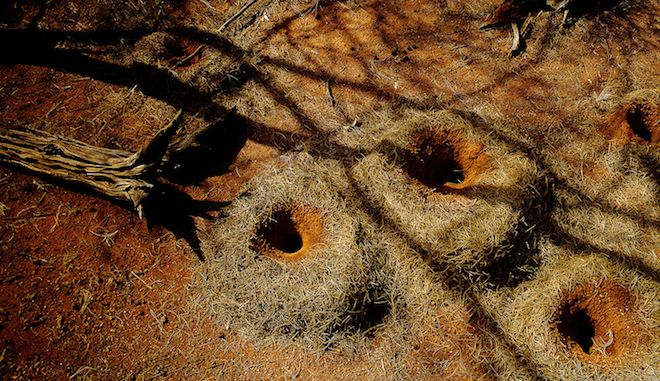 Anyone who has spent time in the mulga during or after summer rain will confirm the presence of unseen holes and vents, countless pores in the mantle of an ancient landscape, back doors and escape entrances, blocked holes and pop holes, that open to release the exodus of winged alates of termites and ants or emergent burrowing wasps and moths.