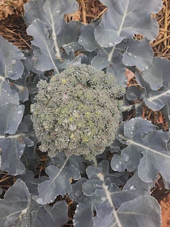 Raindrops on lettuce in the farm area, and below, broccoli.